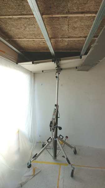 Il permet à une seule personne d’installer seul les plaques de plâtre au plafond ou sous rampant.