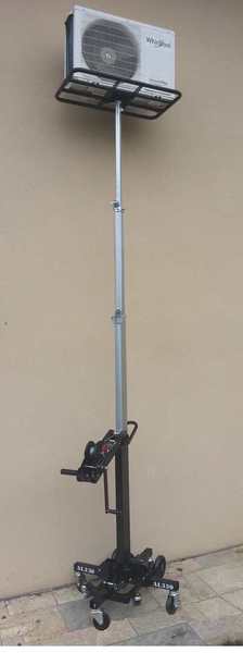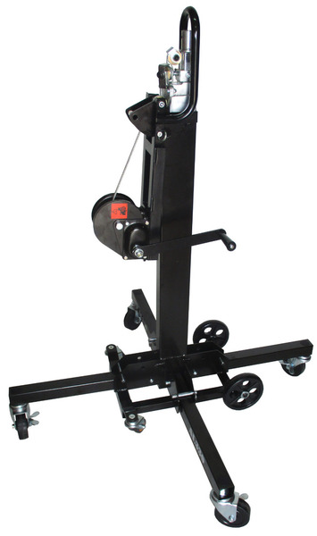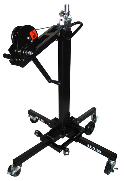 Elévateur manuel portable universel adapté à tout levage vertical pour un travail en sécurité grace à son mât spécial anti-torsion et son treuil déporté avec frein automatique.