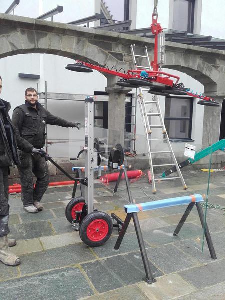 Le diable élévateur transporteur de verre développé en France par UPTER.
